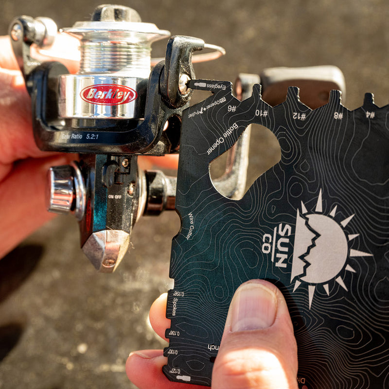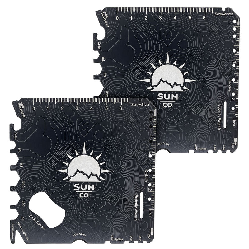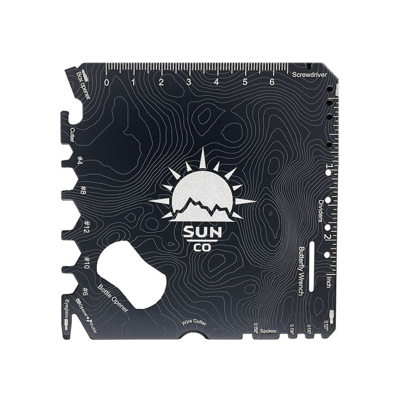 The BenchTop Coaster multi-tools provide 22 unique functions in a single drink coaster. Tools include screwdrivers (Phillips, flathead, and eyeglass), wrenches (hex, spoke, and butterfly), box opener, wire cutter, bottle opener, and more! The durable stainless steel body is designed to take a beating on a job site, or in the Great Outdoors. The face of each BenchTop Coaster includes a laser-engraved logo as well as a laser-engraved topographic map. A classic design for any environment. The perfect gift for anyone who loves camping, fishing, hunting, tools, and/or drinking! Two coasters included.