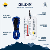 Ideal for swimming, diving, fishing, and other water sports, the ChillChek is designed with a fully enclosed IPX8-rated housing, ensuring it can handle depths of up to 150 feet (45 meters). The ChillChek also comes with a high-visibility reflective break-away lanyard and a durable brass split ring, making it easy to attach to your zipper, backpack, keychain, or any outdoor or marine gear. Whether you're exploring the ocean depths or just enjoying a day at the lake, ChillChek is the reliable choice for monitoring water temperatures.