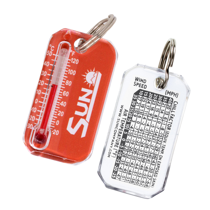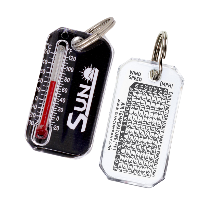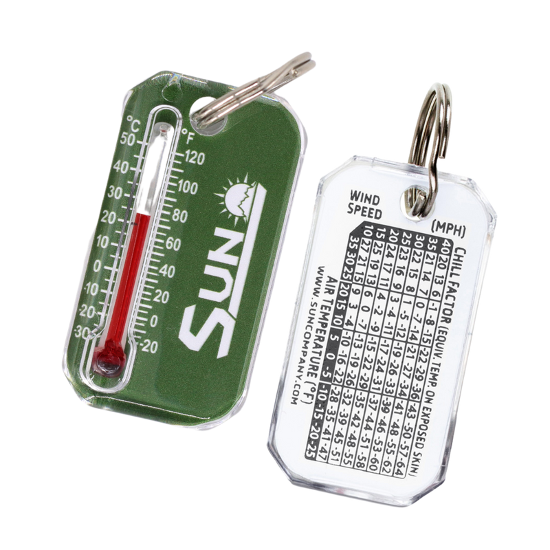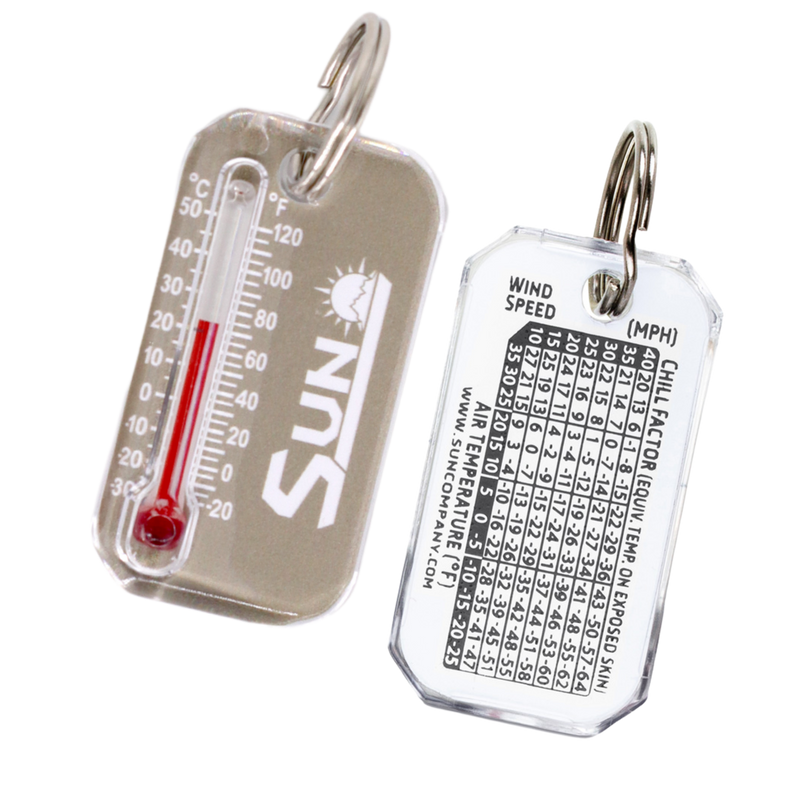 Luminous compass allows you to determine direction even in low-light conditions. Reads down to -20º Fahrenheit and -30º  Celsius and includes a wind chill chart. Solid brass split ring won’t affect compass reading.