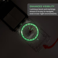 True North and Magnetic North are not identical. The Sun Company ProSight Sighting Map Compass has an adjustable declination dial that makes it easy to get the most precise reading from your compass. Compass bezel rotates 360 degrees for easy bearings and the dial is ultra-luminous, making it the perfect compass for low-light situations. The protective cover keeps the compass safe from damage. Open up the cover to reveal a full-sized sighting mirror. Includes a clinometer in the dial for measuring the height of any landmark. Full instructions are included for help with setting declination, taking bearings, and measuring target heights. Other features include a jewel bearing, 3X magnifying glass, 4 map scales, inch and mm rulers, a break-away safety lanyard, and silicone anti-slip foot pads.