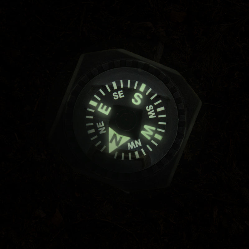 Direction at a glance! This impact-resistant compass sits in durable ABS housing and fits most sports watch bands, as well as homemade paracord bracelets. Just slip it on and go. Compass is luminous and liquid-filled, making it a perfect addition to any night time adventure. One of the necessary accessories for outdoor, hiking, camping, or survival gear. A great gift that is long lasting and reliable in any situation.