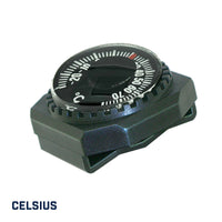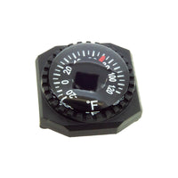 Temperature at a glance! This impact-resistant thermometer sits in durable ABS housing and fits most sports watch bands—just slip it on and go. The Japanese-made dial thermometer is highly accurate, measuring temperatures from -20º to +120º Fahrenheit. A great addition to any watch!